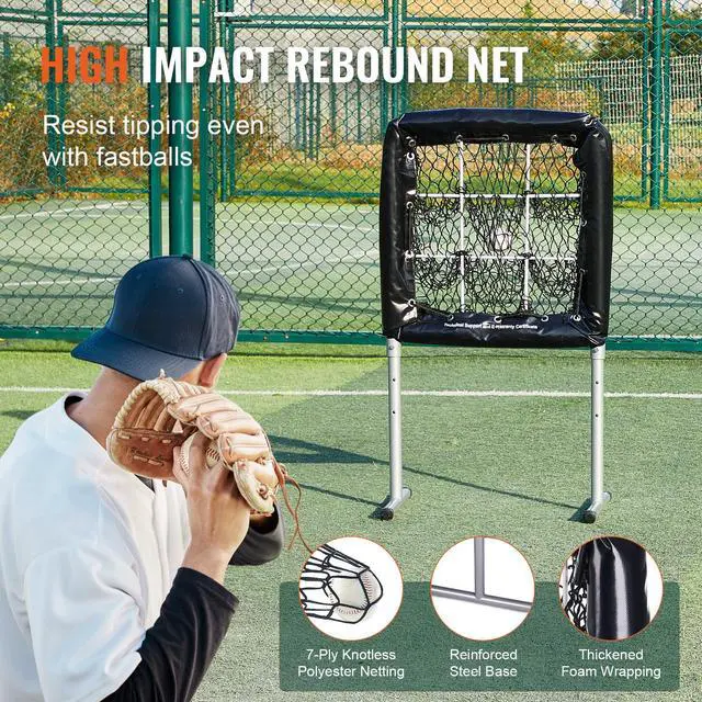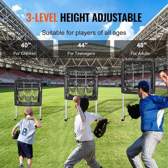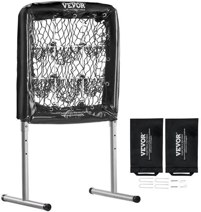 VEVOR 9 Hole Baseball Net, 28"x27" Softball Baseball Training Equipment for Hitting Pitching Practice, Heavy Duty Height Adjustable Trainer Aid with Strike Zone & 4 Ground Stakes, for Youth Adults