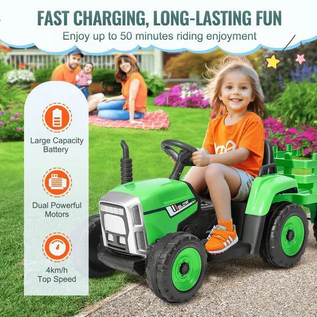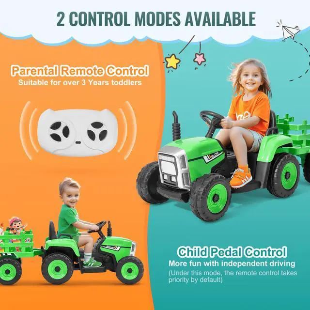 VEVOR Kids Ride on Tractor 12V Electric Toy Tractor with Trailer Remote Control