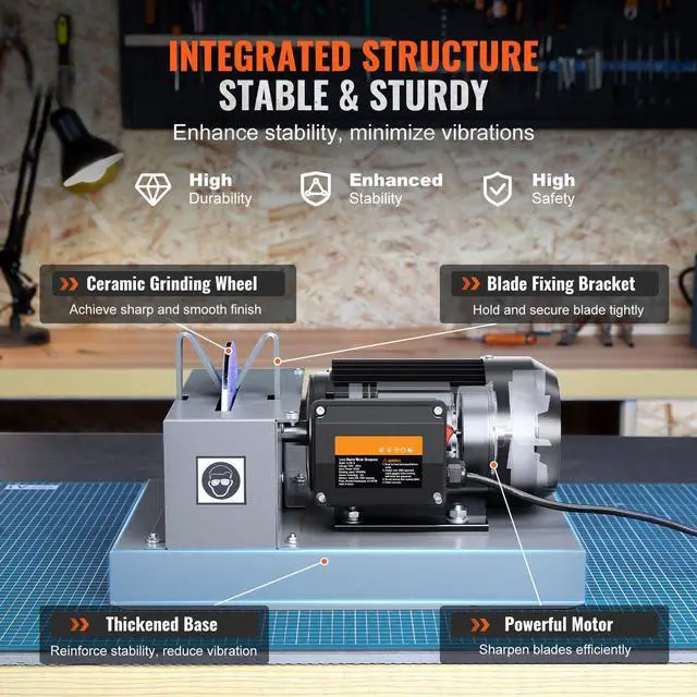 VEVOR Lawn Mower Blade Sharpener, 2/3HP 500W Lawnmower Blade Grinder with 7-inch Ceramic Grinding Wheel, Powerful Bench Mower Sharpening Machine for High/Low Lift Blades, Gator Blades, Flat Blades