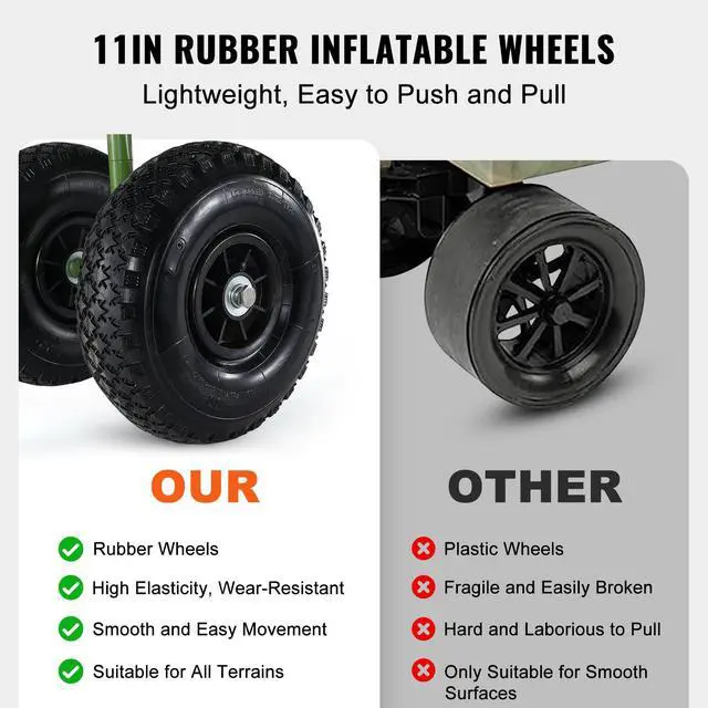 VEVOR Beach Fishing Cart, 300 lbs Load Capacity, Foldable Fish and Marine Cart with Four 11" Big Wheels Rubber Balloon Tires for Sand, Heavy-Duty Steel Pier Wagon Trolley with 8 Rod Holders for Picnic