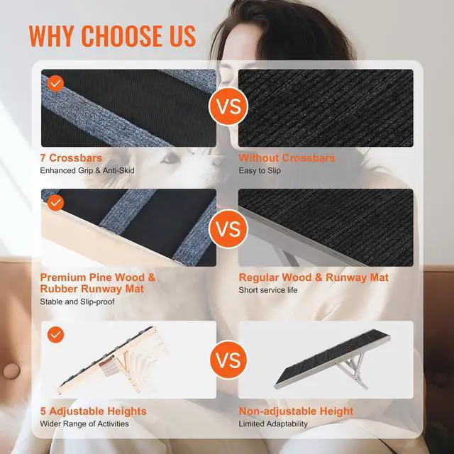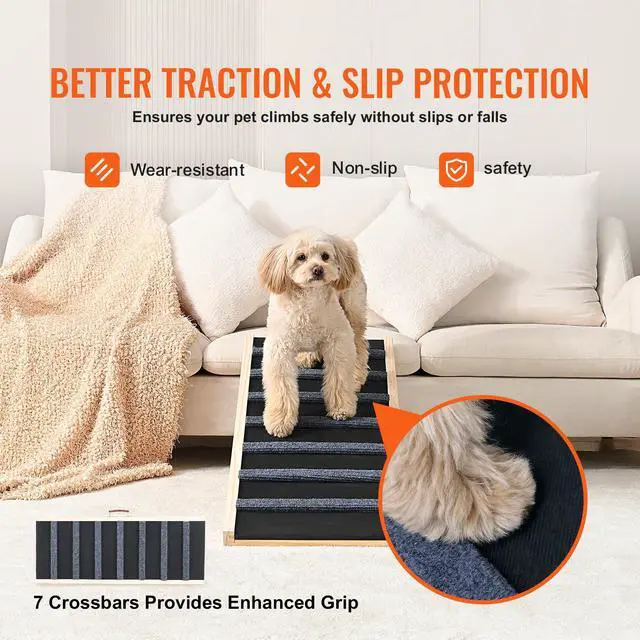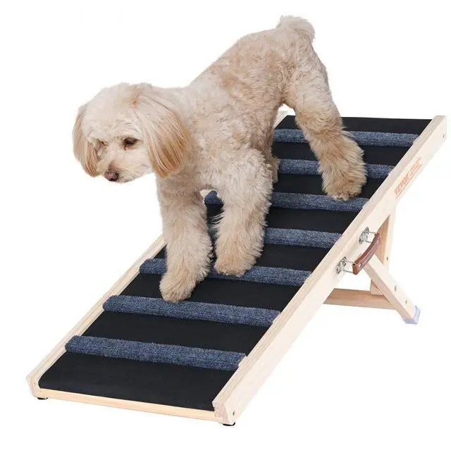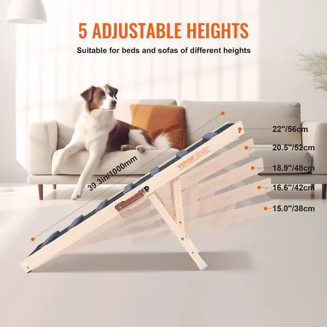 VEVOR Dog Ramp, Folding Pet Ramp for Bed, Adjustable Dog Ramp for Small, Large, Old Dogs & Cats, Wooden Pet Ramp with 39.3" Long Ramp, Adjustable from 15" to 22", Suitable for Couch, Sofa, Car