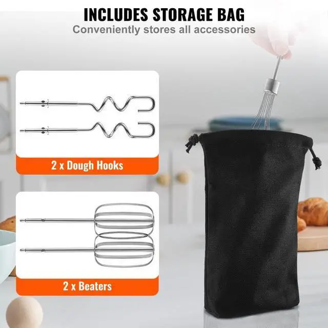 VEVOR Cordless Electric Hand Mixer, 250W, Continuously Variable Electric Handheld Mixer, with Turbo Boost Beaters Dough Hooks Storage Bag, Baking Supplies for Whipping Mixing Egg Cookie Cake Cream