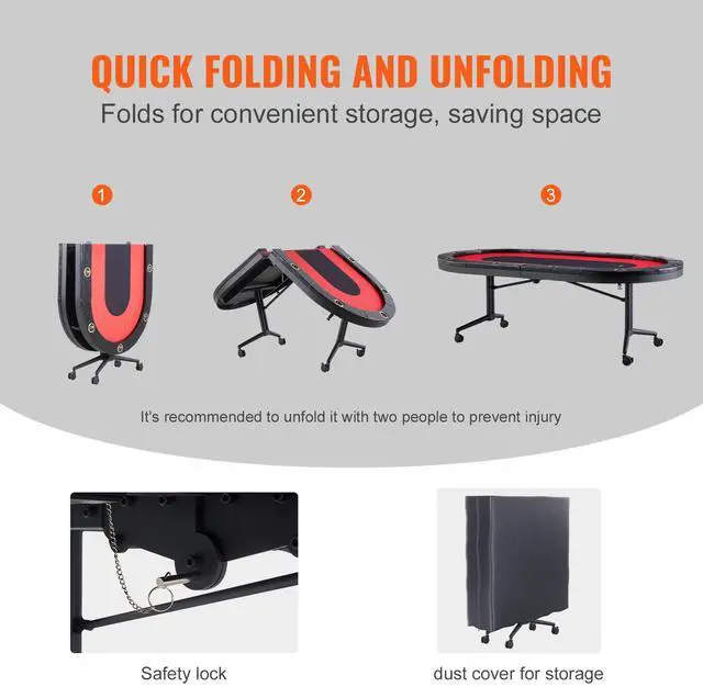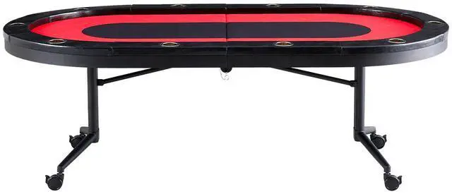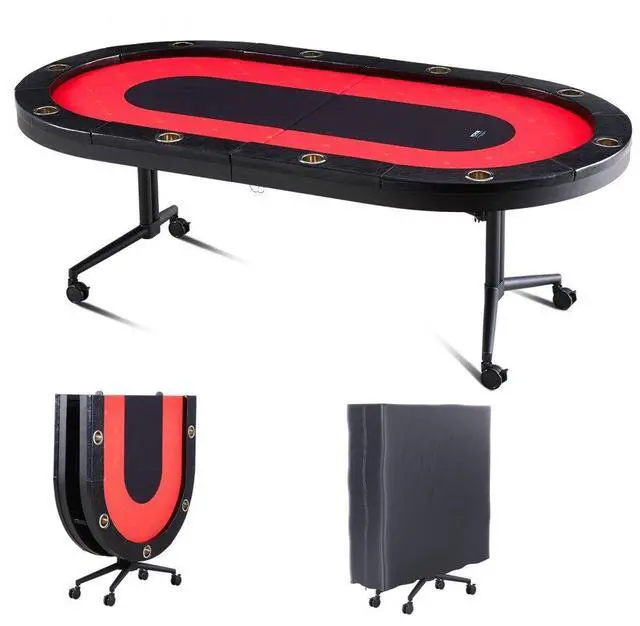 VEVOR 10 Player Foldable Poker Table, Blackjack Texas Holdem Poker Table with Padded Rails and Stainless Steel Cup Holders, Portable Folding Card Board Game Table, 90" Oval Casino Leisure Table