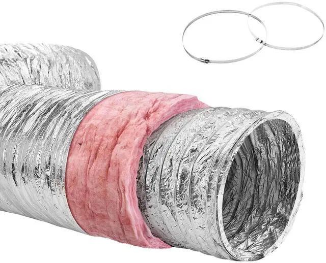 VEVOR Dryer Vent Hose, 5'' Insulated Flexible Duct 25FT Long with 2 Duct Clamps, Heavy-Duty Three Layer Protection for HVAC Heating Cooling Ventilation and Exhaust, R-6.0 Flame Resistance Value