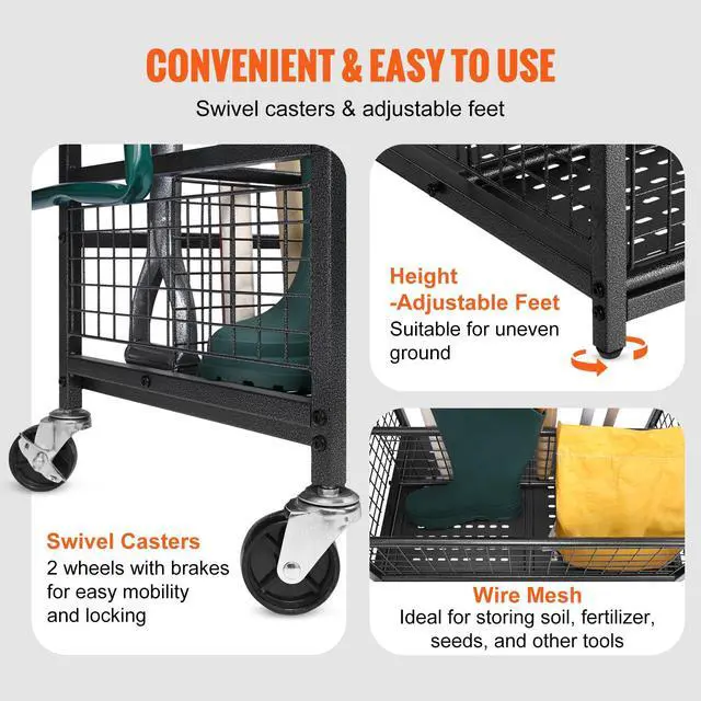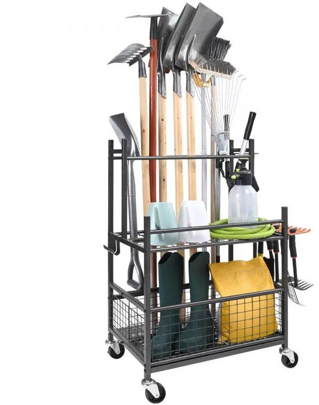 VEVOR Garden Tool Organizer, 16 Slots with Hooks, Yard Tool Tower Rack with Wheels for Garage Organization and Storage, Hold Long-Handled Tool/Rake/Broom, Metal Tool Stand Holder for Shed, Outdoor