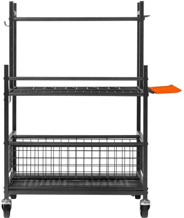 Slots: 16,Number of Shelves: 3,Movable Hook Quantity: 5,Item Model Number: RF-RY-029,Fixed Hook Quantity: 13,Product Weight: 23.81 lbs/10.8 kg,Material: Carbon Steel,Product Size: 25.66 x 15.86 x 38.5 in/652 x 403 x 990 mm