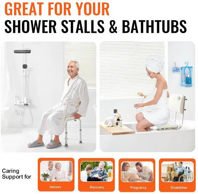 VEVOR Shower Chair, Shower Seat with Back, Adjustable Height Shower Stool, Shower Chair for Inside Shower Bathtub, Non-slip Bathroom Bench Bath Chair for Elderly Disabled Handicap, 350 lbs Capacity