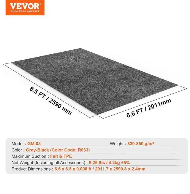 VEVOR Waterproof Garage Floor Mat for Under Car, Non-slip 6.6'x8.5' Compact Size Heavy Duty Containment Mat, Protects Garage Floor from Water, Mud and Oil, For Garages,Greenhouses,Entrance