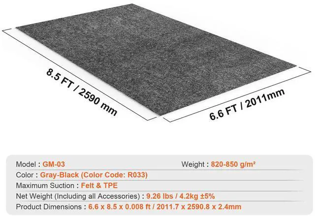 Main Materials: Felt & TPE,Net Weight (Including all Accessories): 9.26 lbs / 4.2kg ±5%,Color: Gray-Black,Model: GM-03,Product Dimensions: 6.6 x 8.5 x 0.008 ft / 2011.7 x 2590.8 x 2.4mm,Weight: 820-850 g/m²