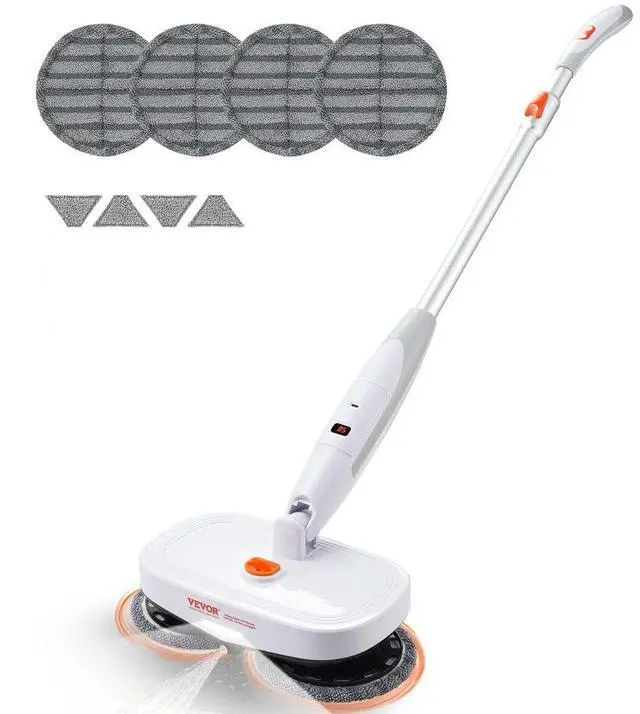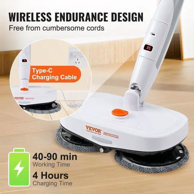 VEVOR Cordless Electric Mop, Electric Spin Mop with Water Tank, up to 40 mins Battery, LED Headlight, Dual Mop Heads, 4 Microfiber Pads & 4 Trapezoid Microfiber Pads, for Hardwood/Tile Floor Cleaning