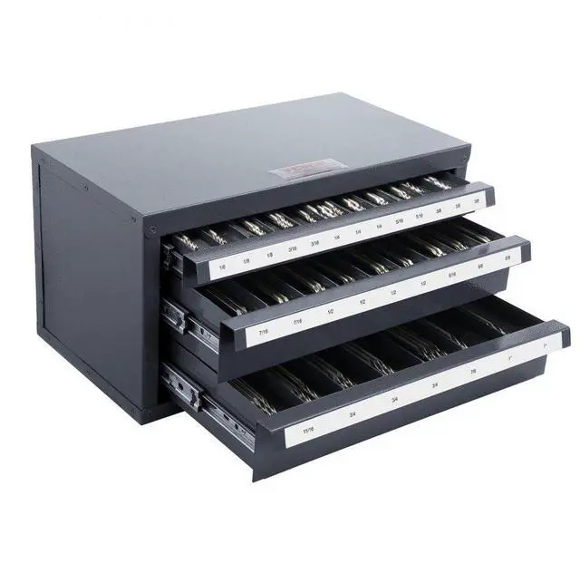 VEVOR End Mill Dispenser Cabinet, Three-Drawer End Mill Organizer Cabinet for 1/8" to 1", Steel End Mill Dispenser Organizer Cabinet with Labels, 29-Compartment Stackable for End Mill Storage