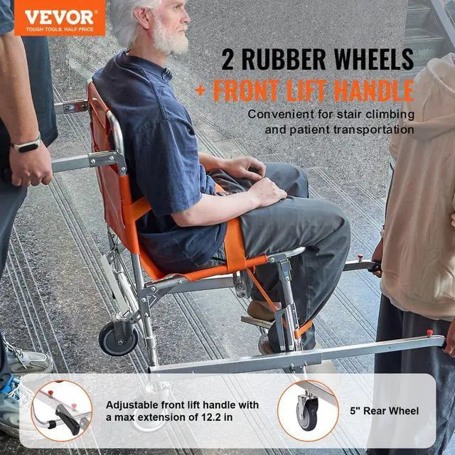 VEVOR EMS Stair Chair, 350 lbs Load Capacity, Foldable Aluminum Emergency Stair Climbing Wheelchair with 2 Wheels, Portable Stair Lift Chair Ambulance Firefighter Evacuation Use for Elderly, Disabled