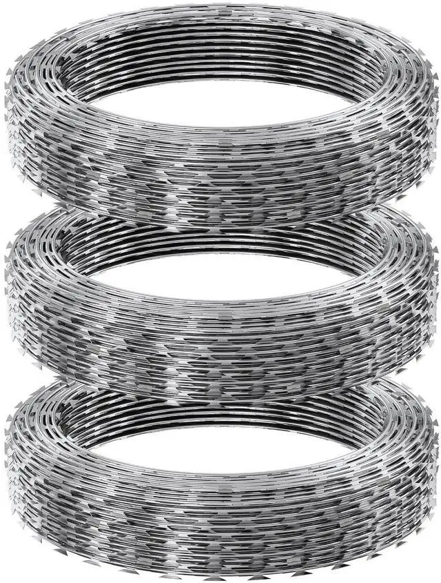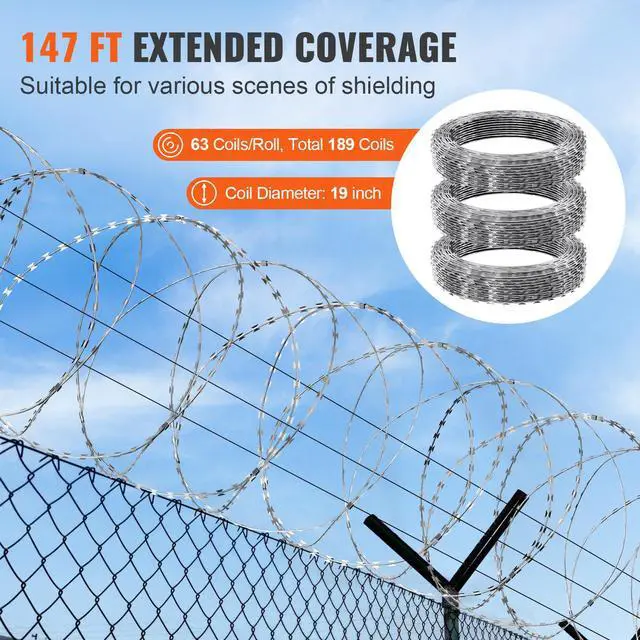 VEVOR Razor Wires, 147 ft Razor Barbed Wire, 3 Rolls Razor Wire Fencing Razor Fence, Double Spiral Razor Ribbon Barbed Wire Galvanized Razor Wire Fence, Rolls Razor for Garden