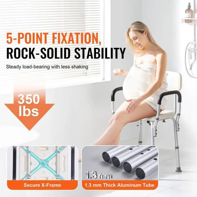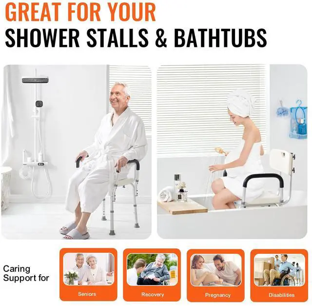 VEVOR Shower Chair, Shower Seat with Back, Adjustable Height Shower Stool, Shower Chair for Inside Shower Bathtub, Non-slip Bathroom Bench Bath Chair for Elderly Disabled Handicap, 350 LBS Capacity
