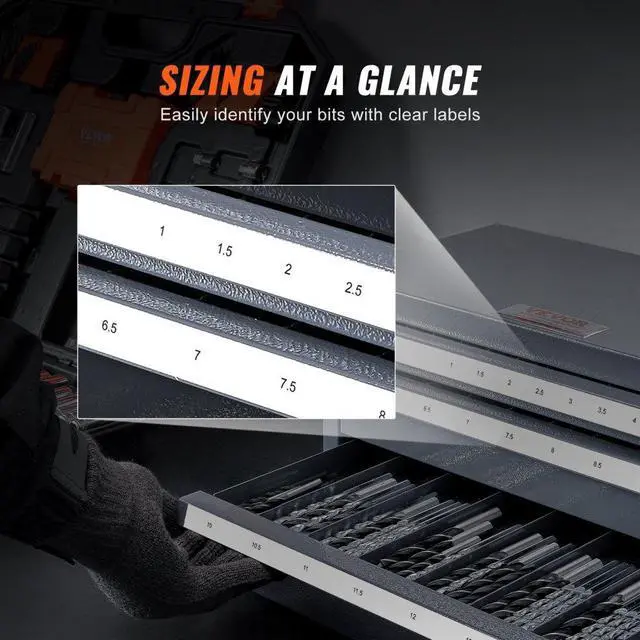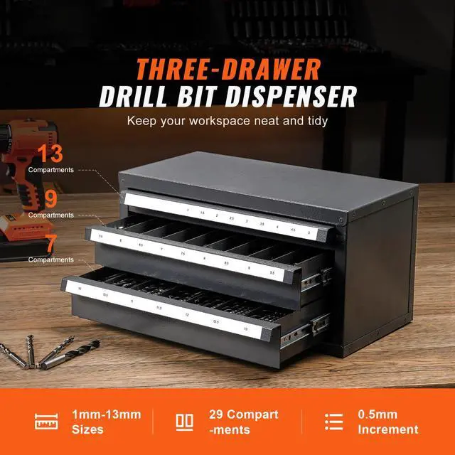 VEVOR Drill Bit Dispenser Cabinet, Three-Drawer Drill Bit Organizer Cabinet for 1mm to 13mm, Steel Drill Dispenser Organizer Cabinet with Labels, Stackable Drill Dispenser for Drill Bit Storage