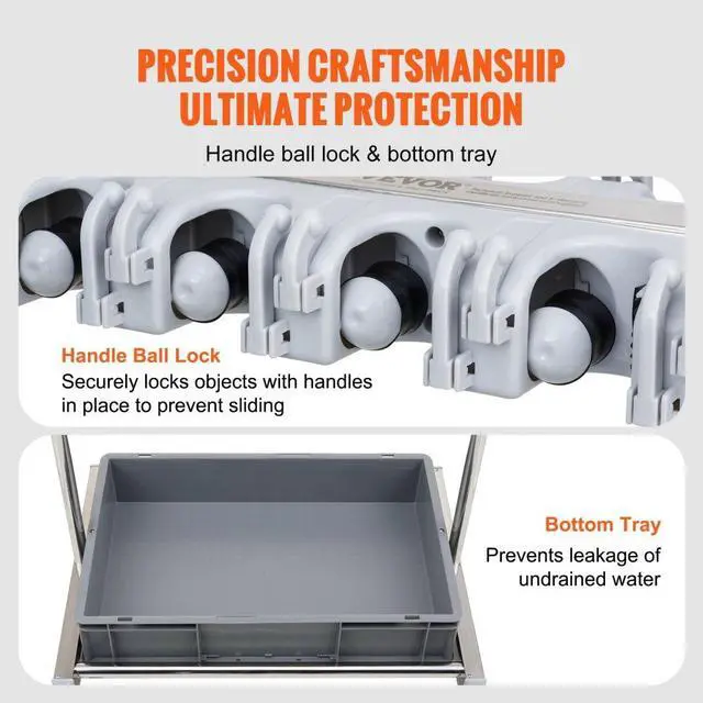 VEVOR Garden Tool Organizer, 10 Slots with Hooks, Yard Tool Tower Rack with Wheels for Garage Organization and Storage, Hold Long-Handled Tool/Rake/Broom, Metal Tool Stand Holder for Shed, Outdoor