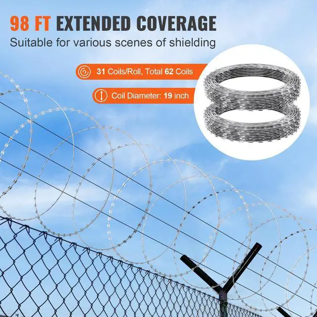 VEVOR Razor Wires, 98 ft Razor Barbed Wire, 2 Rolls Razor Wire Fencing Razor Fence, Razor Ribbon Barbed Wire Galvanized Razor Wire Fence, Rolls Razor for Garden