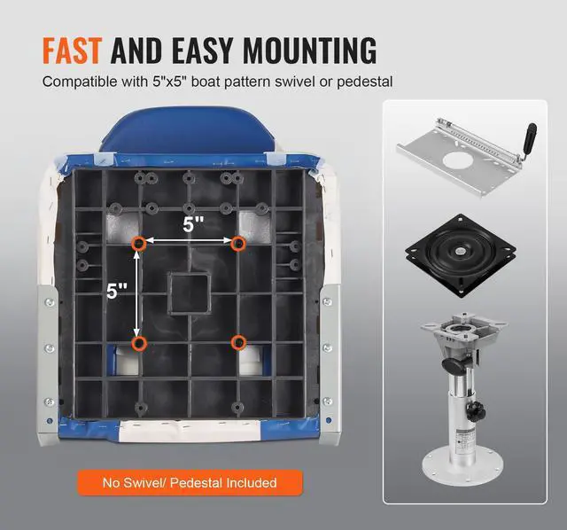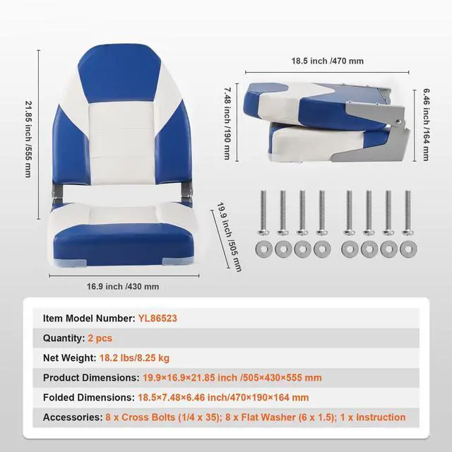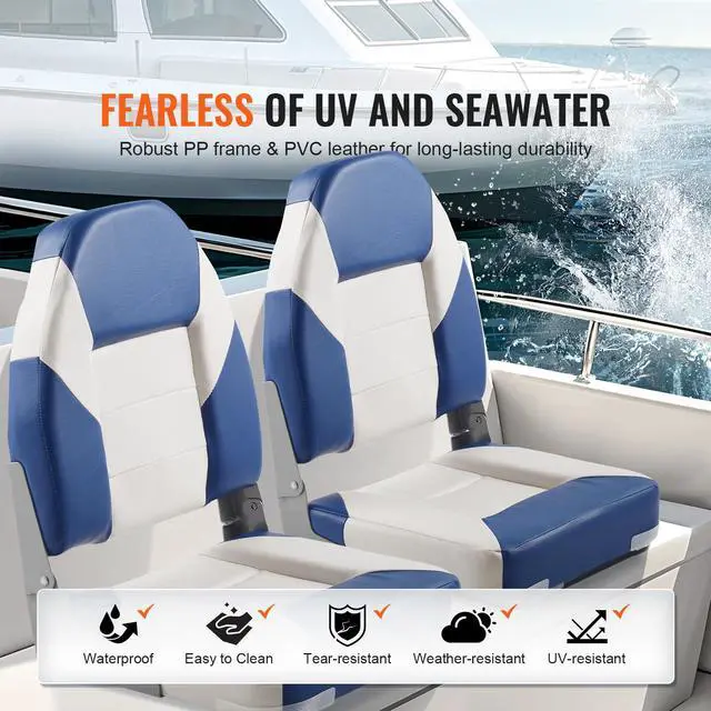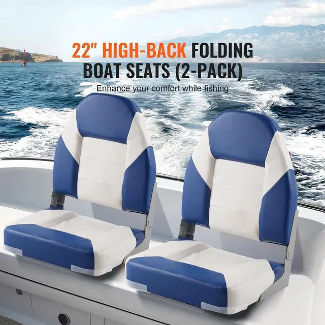 • VEVOR Boat Seats, 21.85" High Back Boat Seat, Folding Boat Chair with Thickened Sponge Padding and Hinge, Fold-Down Boat Captain Chairs for Fishing Boat, Sightseeing Boat, Speedboat, Canoe, 2-Pack