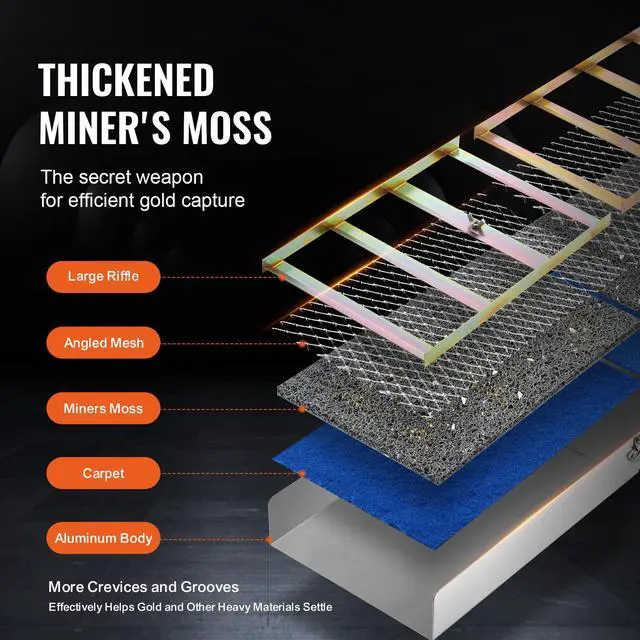 • VEVOR 50 Inch Folding Sluice Box Gold Panning Kit, 23pc Gold Prospecting Equipment Kit with Gold Pan, Classifier Screen, Separating Magnet, Backpack and More