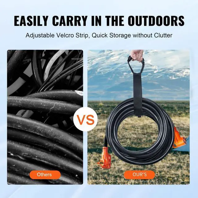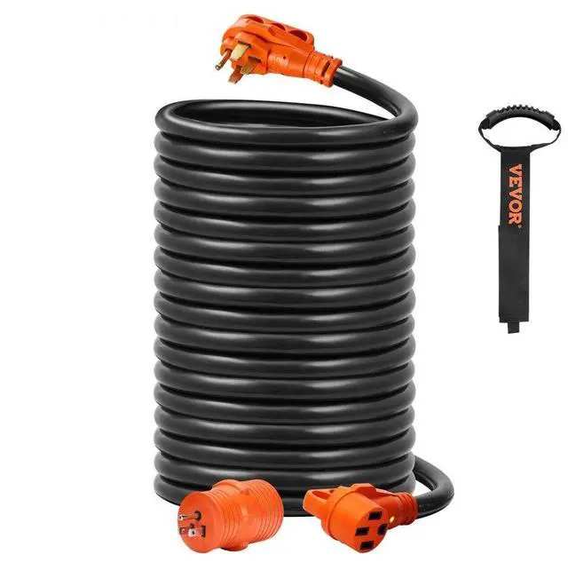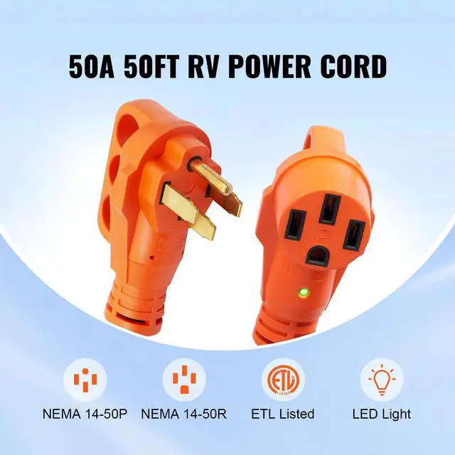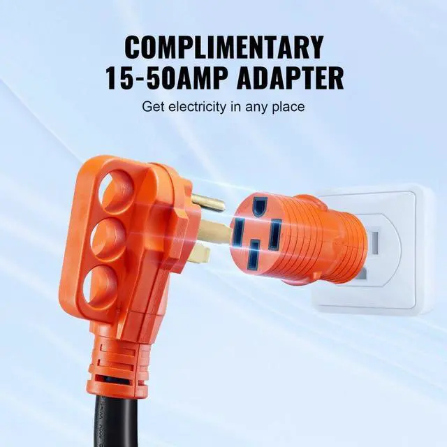 VEVOR 50 ft RV Extension Cord, 50 Amp, Heavy Duty STW RV Power Cord, NEMA 14-50R Female NEMA 14-50P Male Plug, with LED Indicator Handle 15A Adapter, for RVs, trams, generators, campers, ETL Listed