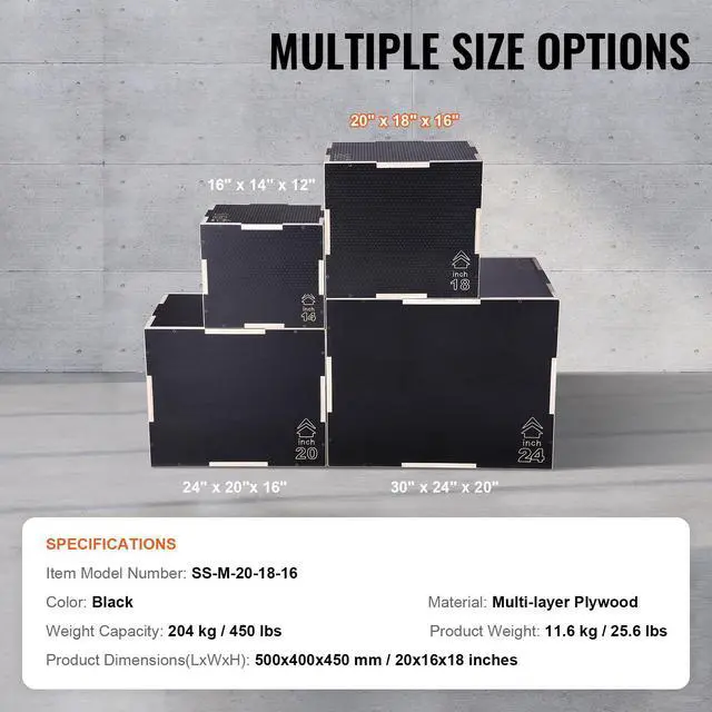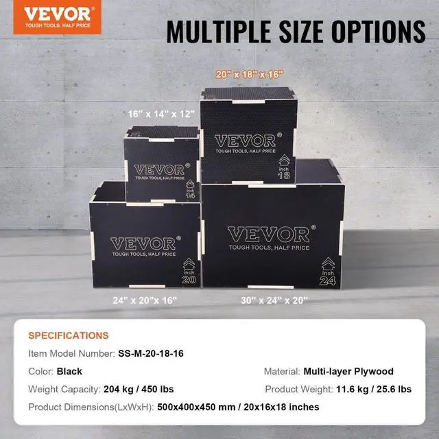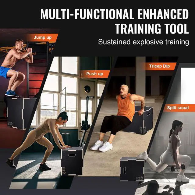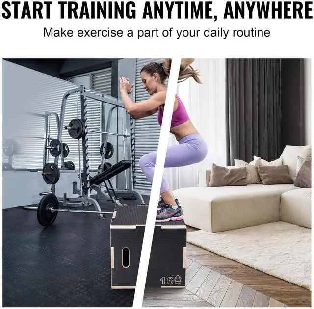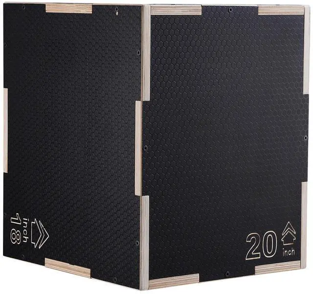 VEVOR 3 in 1 Plyometric Jump Box, 20/18/16 Inch Wooden Plyo Box, Platform & Jumping Agility Box, Anti-Slip Fitness Exercise Step Up Box for Home Gym Training, Conditioning Strength Training, Black