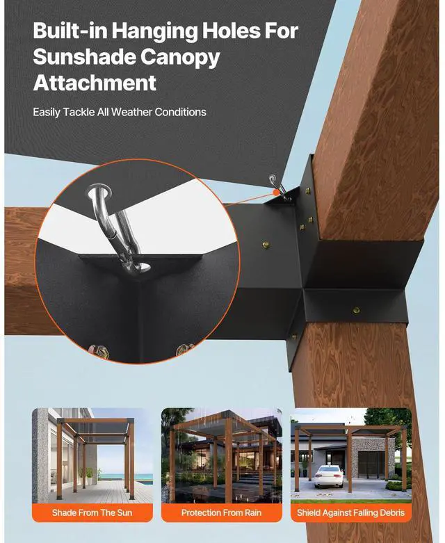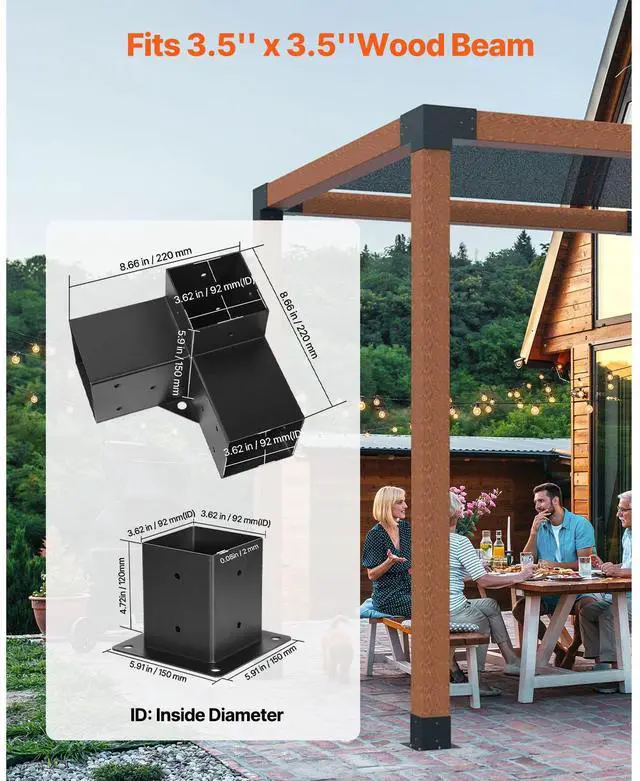 VEVOR Pergola Bracket Kit 4''x4'', 8pcs 3-Way Heavy Duty Corner Bracket Woodworks DIY Post Base Kit, Easy Installation Wooden Beams for Gazebos, Patio Pergolas, Log Cabin Outdoor Pergola Hardware