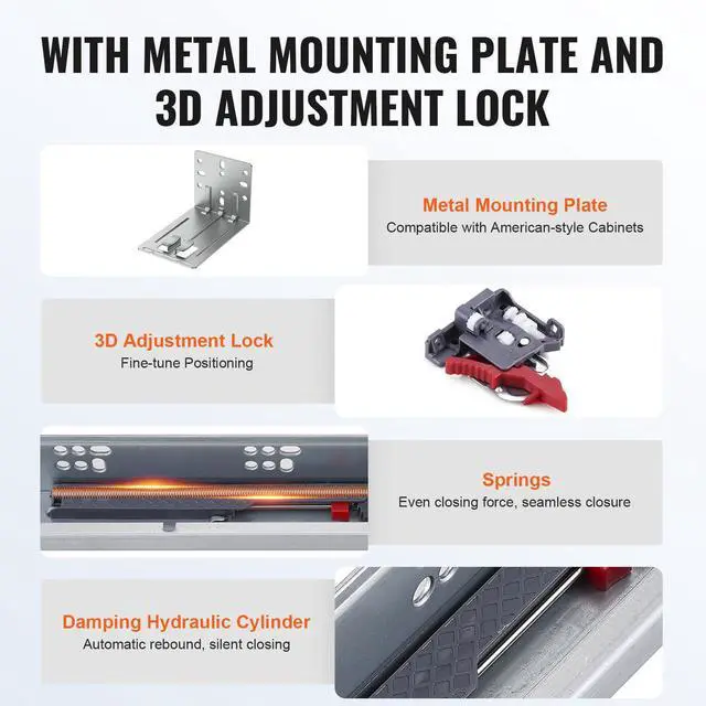 VEVOR 10 Pairs of 21 Inch Drawer Bottom Side Mount Rails, Heavy Duty Full Ball Bearing Extension Steel Track, Soft-Close Noiseless Guide Glides Cabinet Kitchen Runners with Locking Mechanism, 100 Lbs