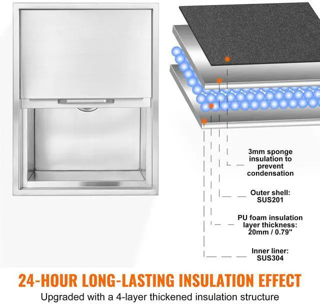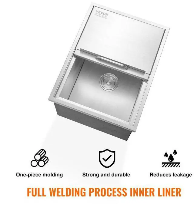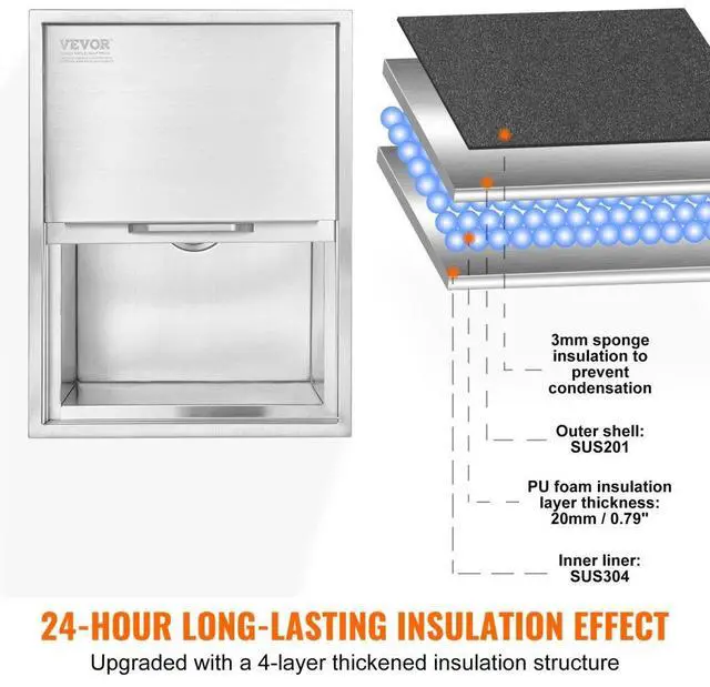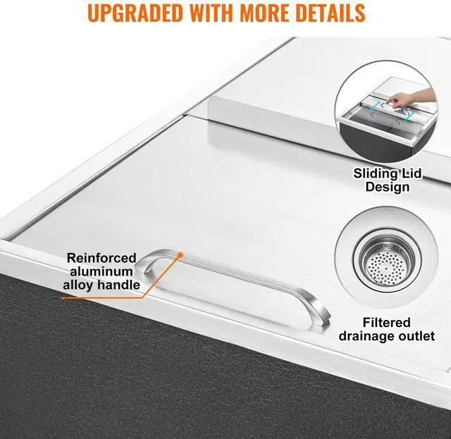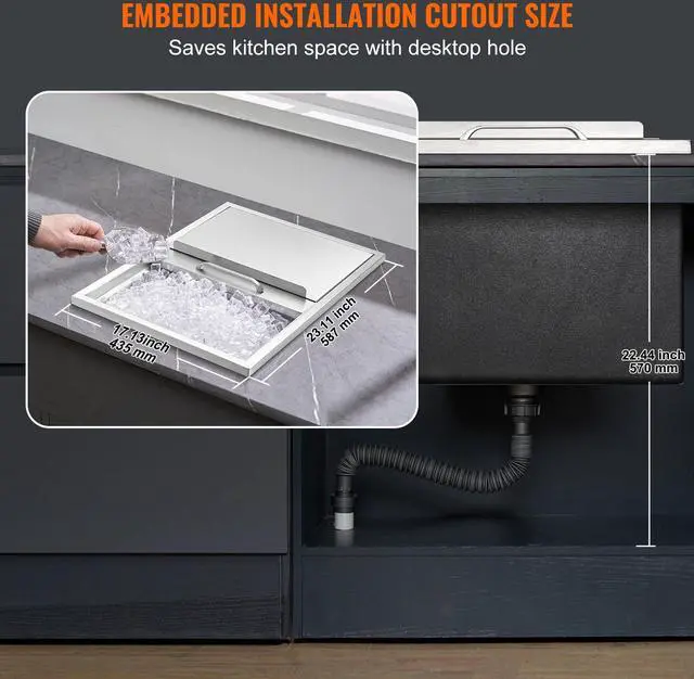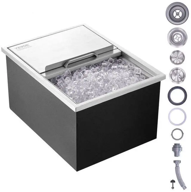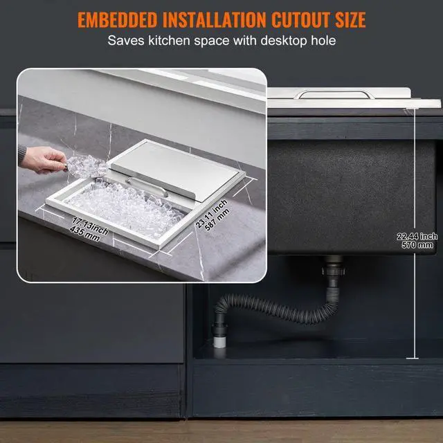 VEVOR Drop in Ice Chest, 24"L x 18"W x 13"H Stainless Steel Ice Cooler, Commercial Ice Bin with Sliding Cover, 40.9 qt Outdoor Kitchen Ice Bar, Drain-pipe and Drain Plug Included, for Cold Wine Beer