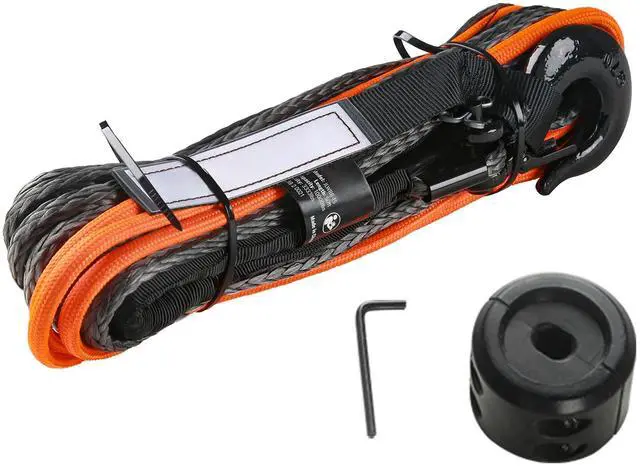 VEVOR Synthetic Winch Rope, 1/4 Inch x 50 Feet 10,000 lbs Synthetic Winch Line Cable Rope with Protective Sleeve + Stopper + Forged Winch Hook + Pull Strap, Fit for ATV, UTV, Small Vehicle, Pickup