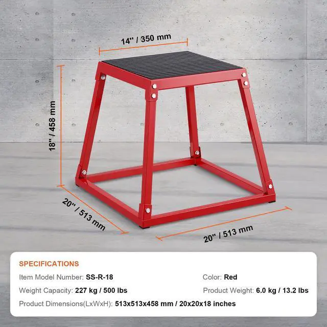 VEVOR Plyometric Jump Box, 18 Inch Plyo Box, Steel Plyometric Platform and Jumping Agility Box, Anti-Slip Fitness Exercise Step Up Box for Home Gym Training, Conditioning Strength Training, Red