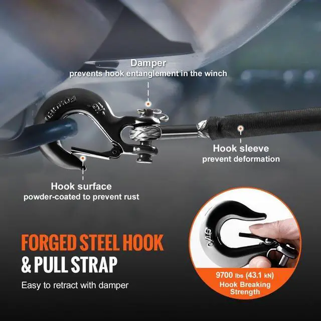 VEVOR Synthetic Winch Rope, 3/16 Inch x 50 Feet 8,350 lbs Synthetic Winch Line Cable Rope with Protective Sleeve + Stopper + Forged Winch Hook + Pull Strap, Universal Fit for ATV, UTV, Vehicle Towing