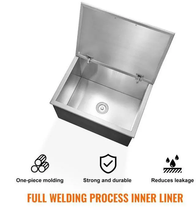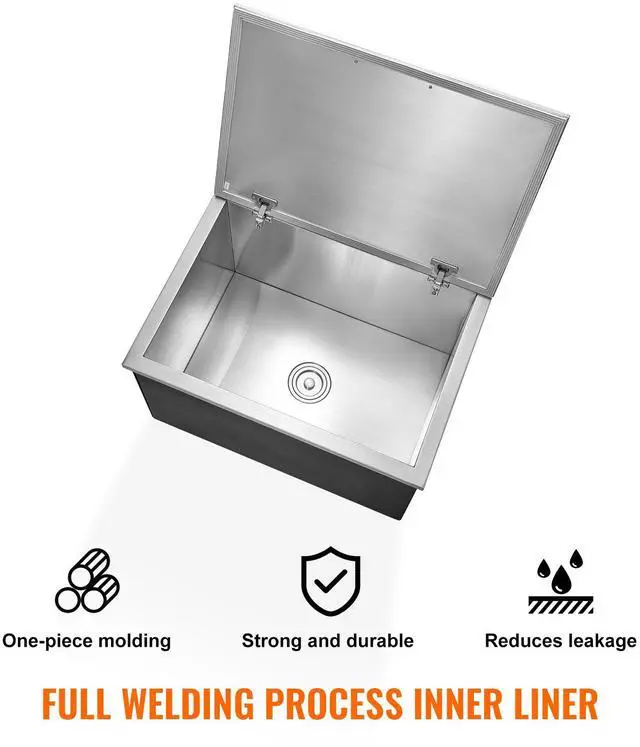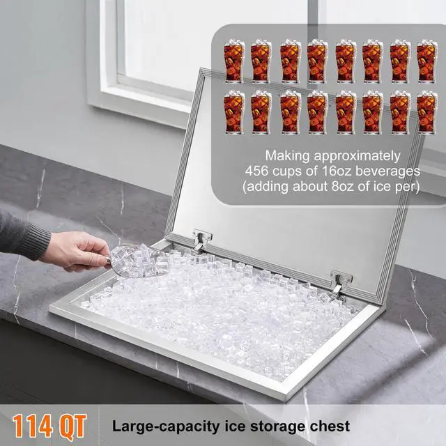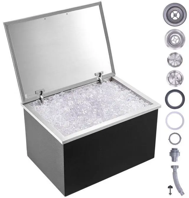 VEVOR Drop in Ice Chest, 28"L x 20"W x 17"H Stainless Steel Ice Cooler, Commercial Ice Bin with Hinged Cover, 40 qt Outdoor Kitchen Ice Bar, Drain-pipe and Drain Plug Included, for Cold Wine Beer