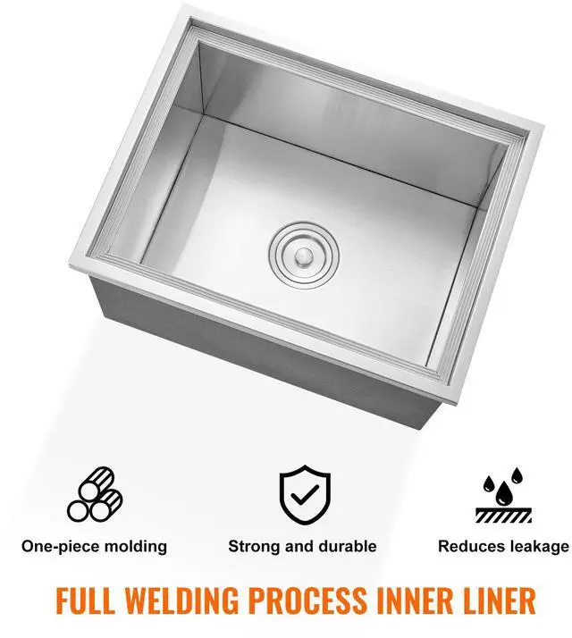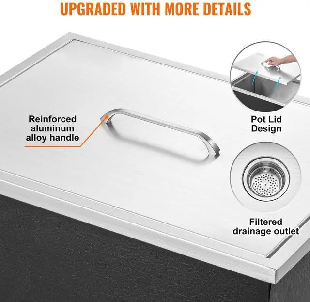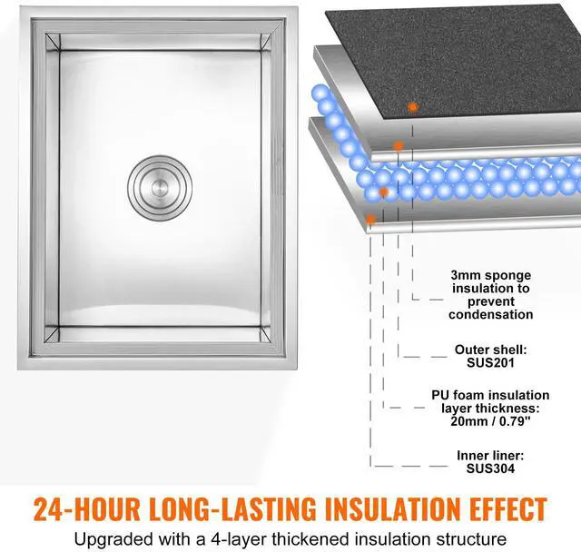 VEVOR Drop in Ice Chest, 22"L x 17"W x 12"H Stainless Steel Ice Cooler, Commercial Ice Bin with Cover, 40 qt Outdoor Kitchen Ice Bar, Drain-pipe and Drain Plug Included, for Cold Wine Beer