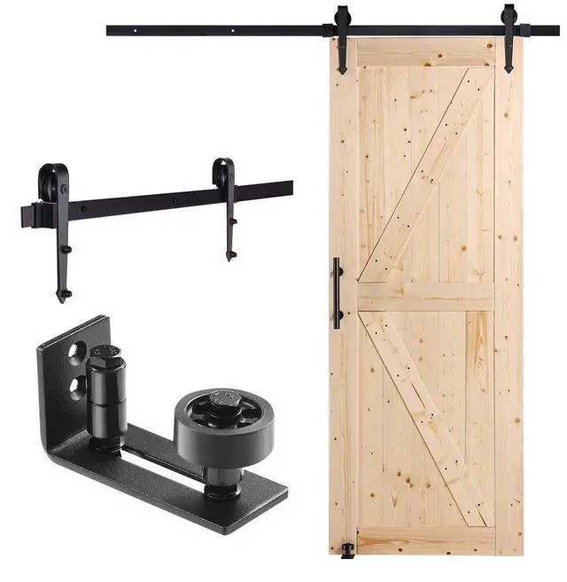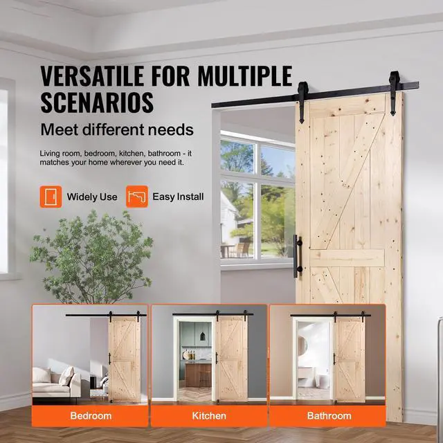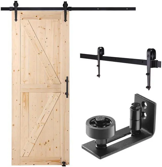 VEVOR Barn Door and Hardware Kit, 30" x 84" Wood Sliding Barn Door, Smoothly and Quietly, Barn Door Kit with 8-in-1 Floor Guide and Door Handle, Spruce Wood Panelled Slab, Easy to Install