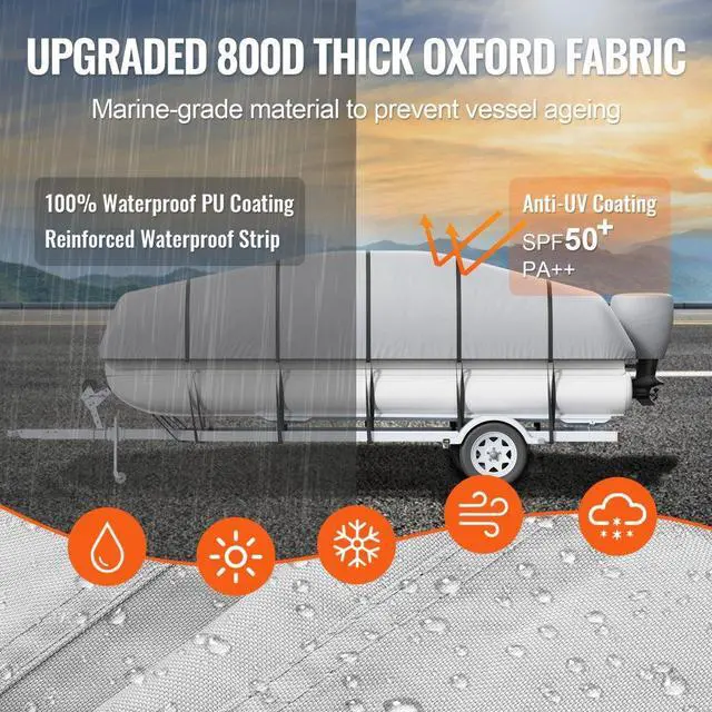 VEVOR Pontoon Boat Cover, 19'-20' Waterproof Trailerable Pontoon Cover, 800D Marine Grade PU Oxford Fabric, with Motor Cover, 16 Windproof Buckle Straps, Fits for 19'-20'L, Beam Width to 96", Grey