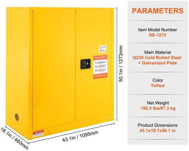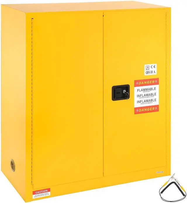 • VEVOR Flammable Storage Cabinet 30 Gal, 43.1 x 18.1 x 50.1 inch Cold-Rolled Steel Flammable Liquid Storage Cabinet Explosion Proof with 1 Adjustable Shelf 2 Manual Closing Doors for Industrial Use, Yellow