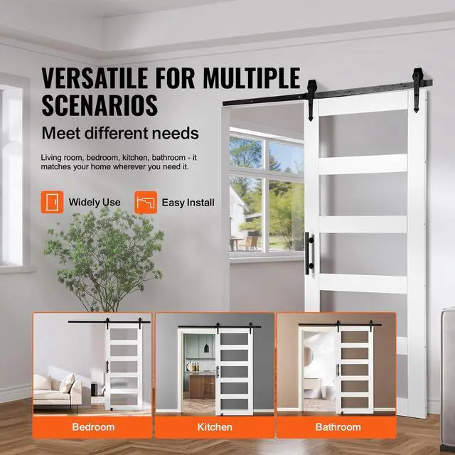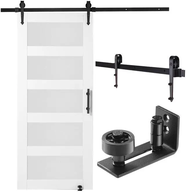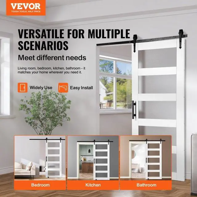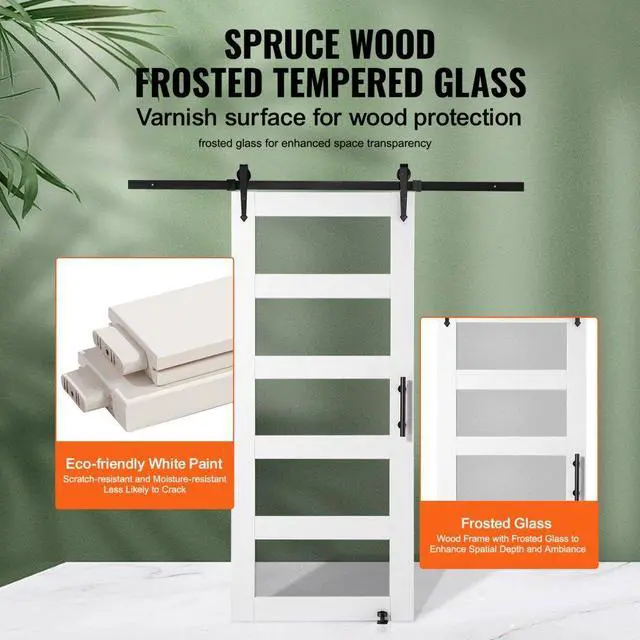 VEVOR Barn Door and Hardware Kit, 36" x 84" Wood and Glass Sliding Barn Door, Smoothly and Quietly, Barn Door Kit with 8-in-1 Floor Guide and Door Handle, Spruce Wood Slab and Frosted Glass