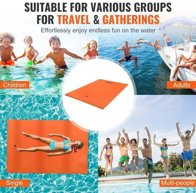 VEVOR Lily Pad Floating Mat, Large 9x6 FT Floating Water Pad, 3-Layer Floating Dock for Adults Kids, 1.3" Thick Tear-Resistant XPE Foam Raft, Floating Island for Lake, Pool, Ocean, Beach, and Boating