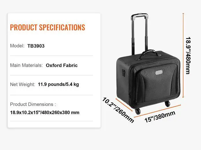 Model: TB3903,Product Dimensions: 18.9x10.2x15'' / 480x260x380mm,Net Weight: 11.9 pounds / 5.4 kg,Main Material: Oxford Fabric