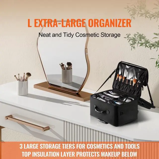 • VEVOR Rolling Makeup Train Case Large Storage 3 Tiers, Convenient Carry With Handle, Wheels, Strap, Professional Makeup Storage Organizer Box Make Up Carrier Waterproof Oxford, Black