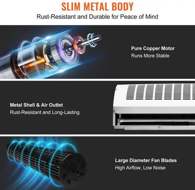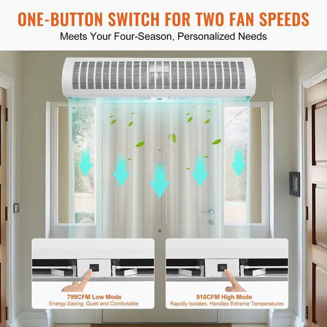 VEVOR 42" Commercial Indoor Air Curtain Super Power 2 Speeds 1350CFM, Wall Mounted Air Curtains for Doors, Indoor Over Door Fan with Heavy Duty Limit Switch, Easy-Install 110V Unheated