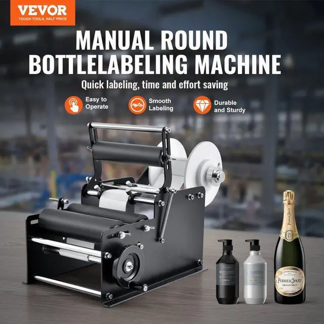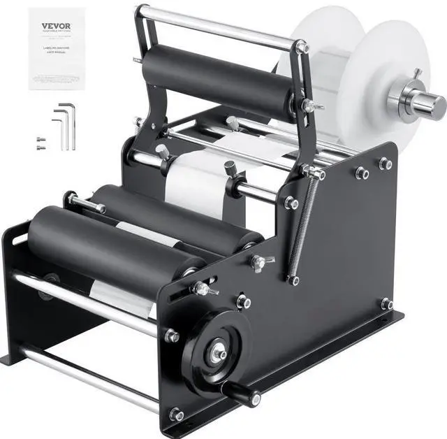 VEVOR Manual Round Labeling Machine, 15-20pcs/min, Bottle Label Applicator for Round Bottles, Adjustable Manual Round Bottle Labeler Suitable for Bottle Diameter 0.78-4.72 inches (with Pressing Bar)