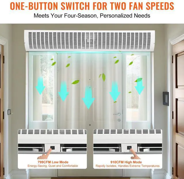 VEVOR 60" Commercial Indoor Air Curtain Super Power 2 Speeds 2100CFM, Wall Mounted Air Curtains for Doors, Indoor Over Door Fan with Heavy Duty Limit Switch, Easy-Install 110V Unheated