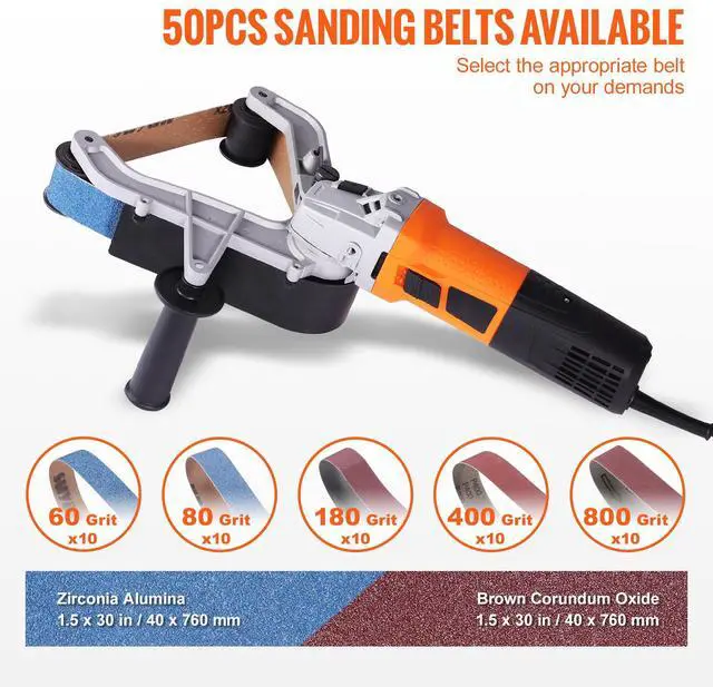 VEVOR Pipe Tube Polisher Sander, 1000W Pipe Belt Sander with 6 Variable Speeds 1100-3200rpm, Professional Belt Sander Grinding Machine with 50PCS Sanding Belts for Burnishing Finishing Rust Removal