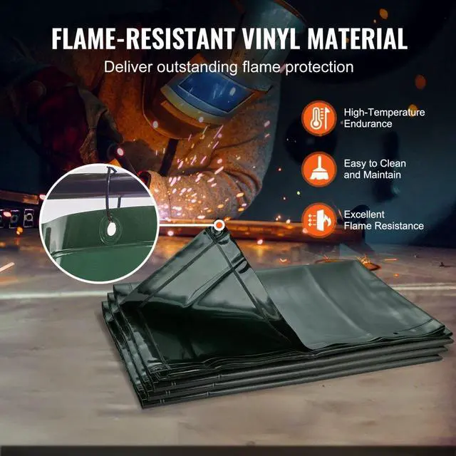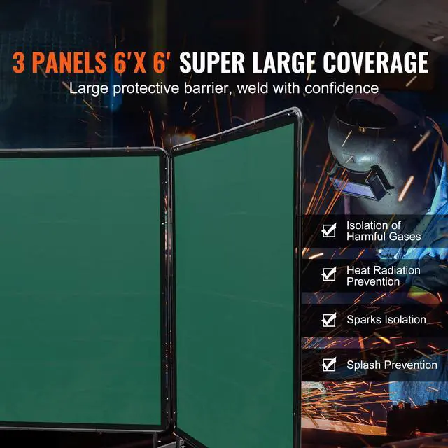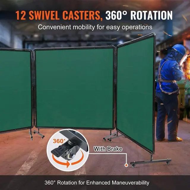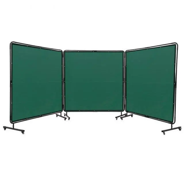 VEVOR Welding Screen with Frame, 6' x 6' 3 Panel Welding Curtain Screens, Flame-Resistant Vinyl Welding Protection Screen on 12 Swivel Wheels (6 Lockable), Moveable & Professional for Workshop, Green