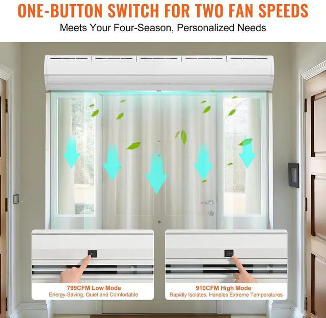 VEVOR 60" Commercial Indoor Air Curtain Super Power 2 Speeds 1500CFM, Wall Mounted Air Curtains for Doors, Indoor Over Door Fan with Heavy Duty Limit Switch, Easy-Install 110V Unheated