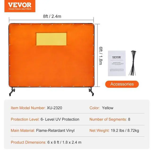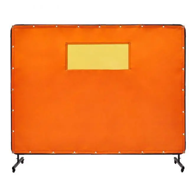 VEVOR Welding Screen with Frame, 6' x 8' Welding Curtain Screens, Flame-Resistant Vinyl Welding Protection Screen with 4 Swivel Wheels (2 Lockable) & Transparent Window for Workshop/Industrial, Yellow