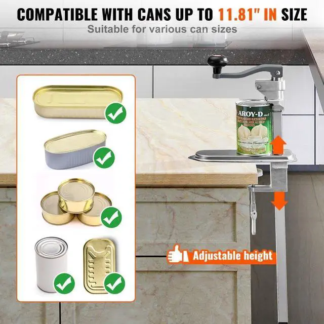 • VEVOR Manual Can Opener, Commercial Table Clamp Opener for Large Cans, Heavy Duty Can Opener with Base, Adjustable Height Industrial Jar Opener For Cans Up to 11.8" Tall, for Restaurant Hotel Home Bar