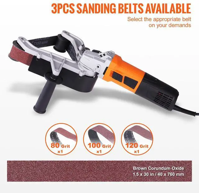 VEVOR Pipe Tube Polisher Sander, 1000W Pipe Belt Sander with 6 Variable Speeds 1100-3200rpm, Professional Belt Sander Grinding Machine with 3PCS Sanding Belts for Burnishing Finishing Rust Removal