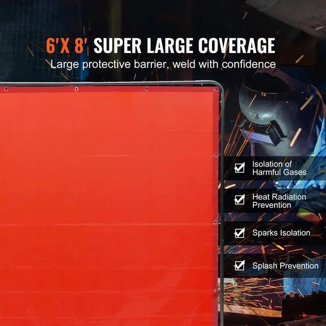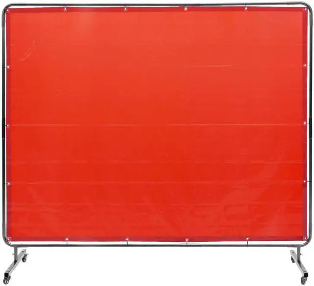 VEVOR Welding Screen with Frame, 6' x 8' Welding Curtain Screen, Flame-Resistant Vinyl Welding Protection Screen on 4 Swivel Wheels (2 Lockable), Moveable & Professional for Workshop/Industrial, Red